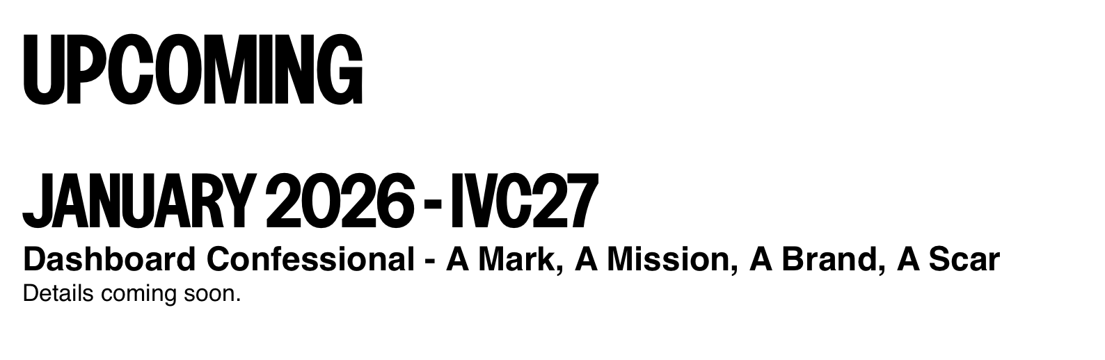 ‘A Mark, A Mission, A Brand, A Scar’ Getting IVC PressingPosted by Jason Tate3 days ago Dashboard Confessional’s A Mark, A Mission, A Brand, A Scar will be January’s release for the Interscope Vinyl Collective.